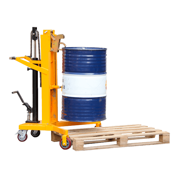 - Принцип работы: Для закрепления бочки необходимо завести нижнюю часть зацепа за кромку бочки. Затем нажать педаль, приведя в действие гидравлический насос для подъёма. Так верхняя часть зацепа автоматически прижмёт верхнюю кромку бочки.