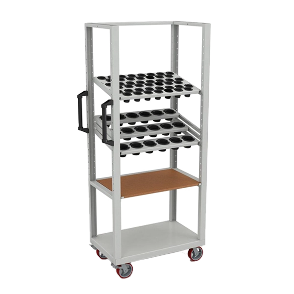 - Тележка, предназначенная для безопасного и эффективного перемещения инструмента и оснастки к станкам с числовым программным управлением (ЧПУ), обеспечивая мобильность и удобство работы.