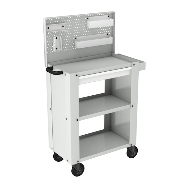 Тележка инструментальная с тремя полками, ящиком и экраном, держателями и полками