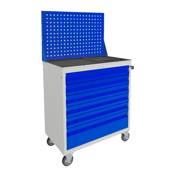 - Комплектуется экраном с перфорацией для размещения навесного инструмента и аксессуаров, экономя место внутри ящиков.
