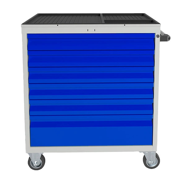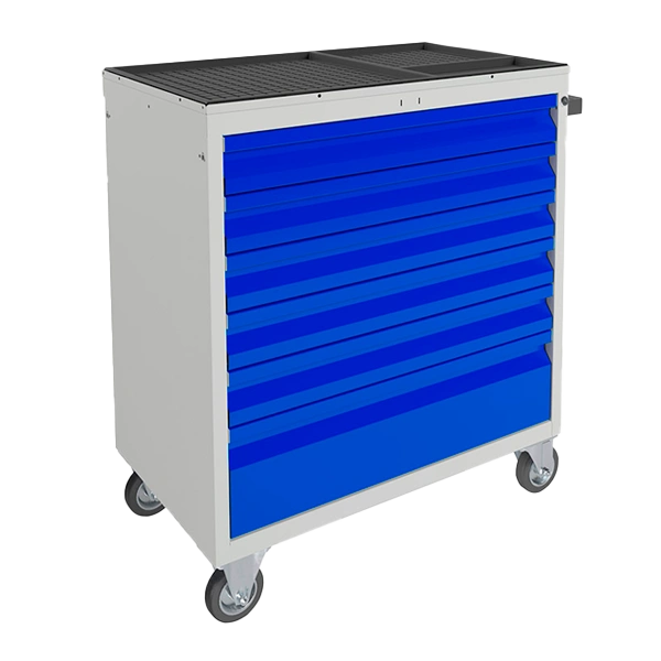 - Тележка оснащена центральным ключевым замком с двумя ключами для надёжной защиты инструмента от несанкционированного доступа.