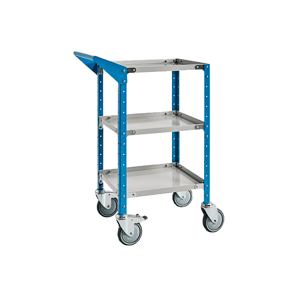 - Стойки окрашены в синий цвет. Полки – серого цвета.