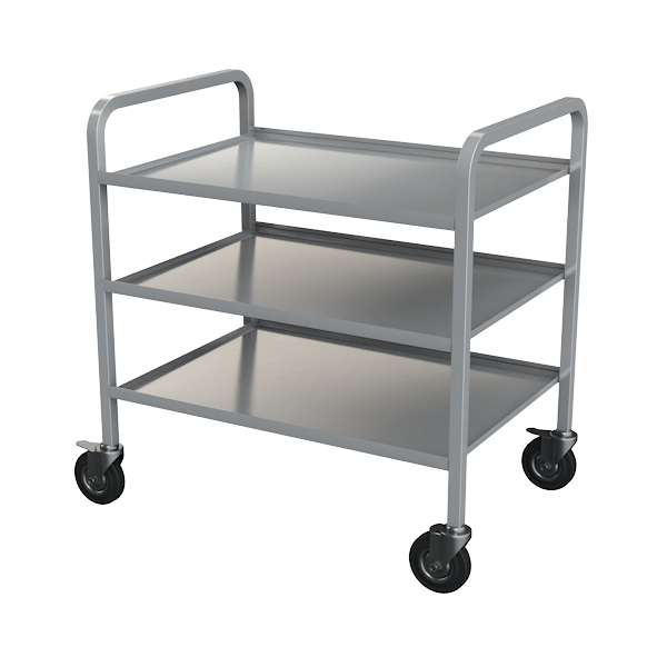 - Кромки подогнуты, что позволяет избежать получение травм персоналом при эксплуатации и санитарной обработке тележки.