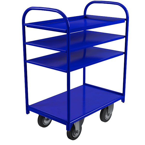 - Тележку можно укомплектовать 1, 2 или 3 полками двух типов: плоскими или формованными с бортиками 30 мм.