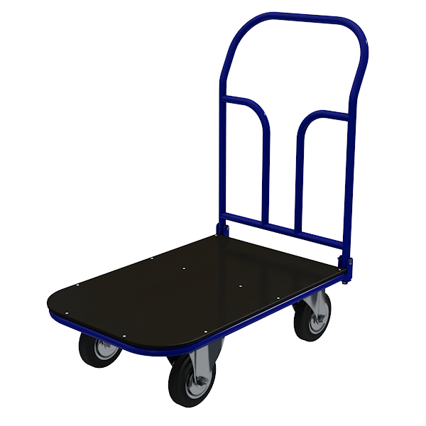 - Тележка платформенная с настилом из ламинированной фанеры со складной ручкой.