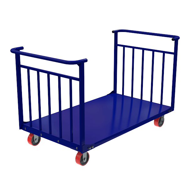 - На тележку устанавливаются две съёмные ручки, что позволяет перевозить груз по принципу "тяни-толкай" без необходимости разворота в узких проходах.