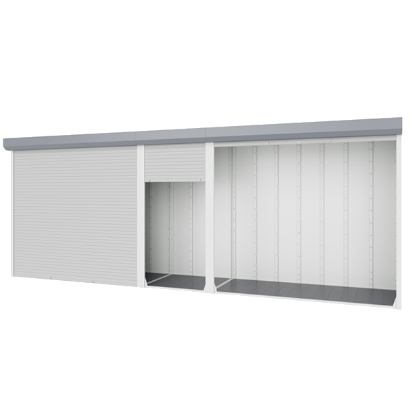 - Представляет собой сборно-разборную конструкцию, состоящую из набора панелей, двух соединительных рам и трёх комплектов роллетных модулей.
