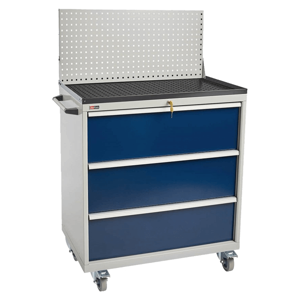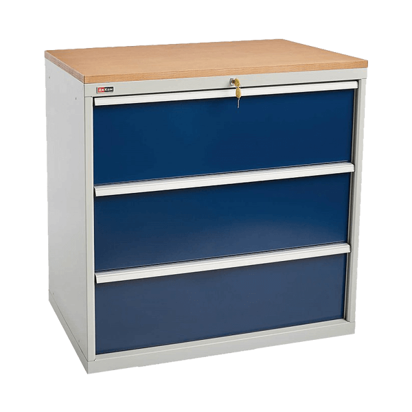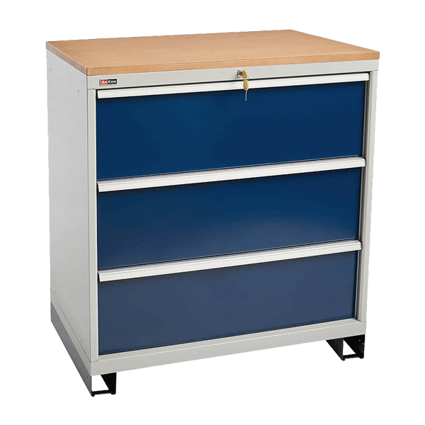 - Состоит из трёх выдвижных ящиков с системой антиопрокидывания (два ящика одновременно выдвинуть невозможно).