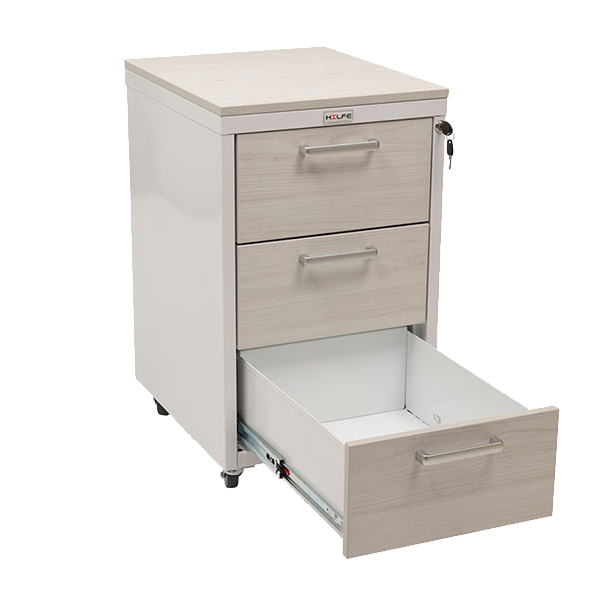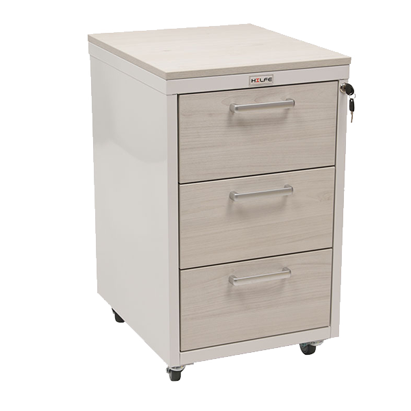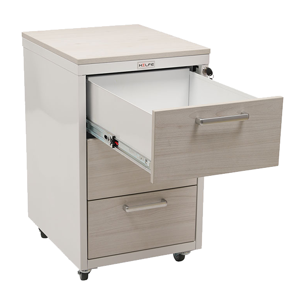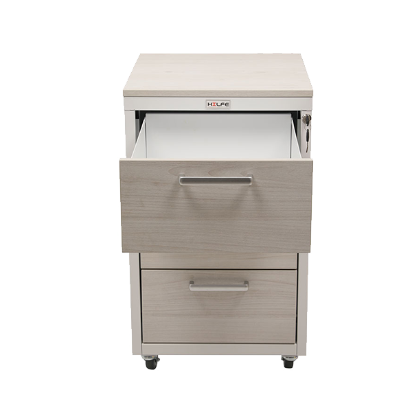 - На тумбу установлены колёса из серой резины диаметром 50 мм, два передних колеса оснащены стопором.