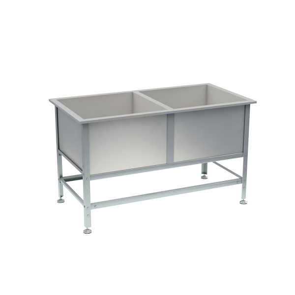 - Сборная конструкция, состоящая из каркаса и двух одинаковых моек, выполненных из нержавеющей стали.