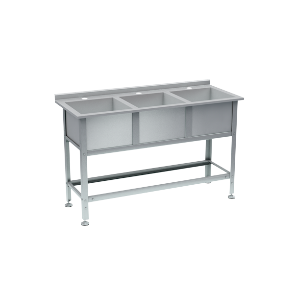 Ванна моечная с бортом 3 мойки 870x1490x580