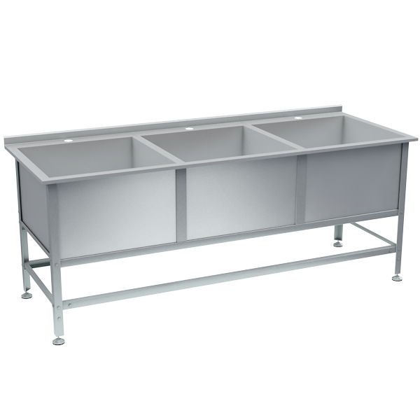 Ванна моечная с бортом 3 раковины 870x2300x750