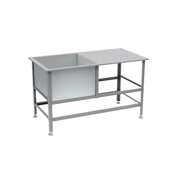 - Конструкция сборного типа, состоящая из каркаса, стола и ванны.