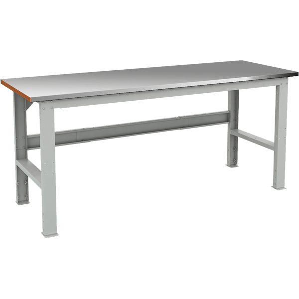 - Столешница выполнена из фанеры толщиной 30 мм и стального листа толщиной 3 мм. Лист столешницы окрашен порошковой краской шагрень, цвет серый полуматовый, RAL 7038