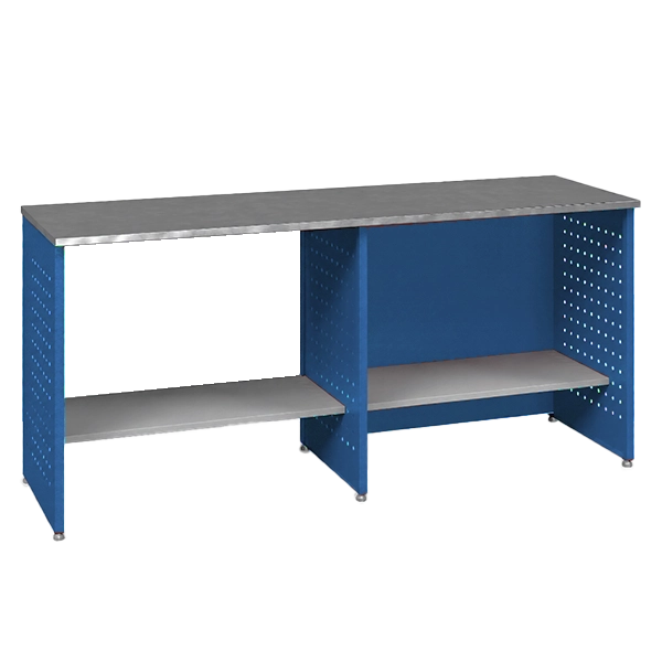 - Каркас выполнен из металла толщиной 1,2 мм, что обеспечивает устойчивость и надёжность конструкции при эксплуатации. Верстак имеет разборное исполнение, что упрощает транспортировку и сборку на объекте. Поверхность окрашена порошковым способом для защиты от коррозии и механических воздействий.