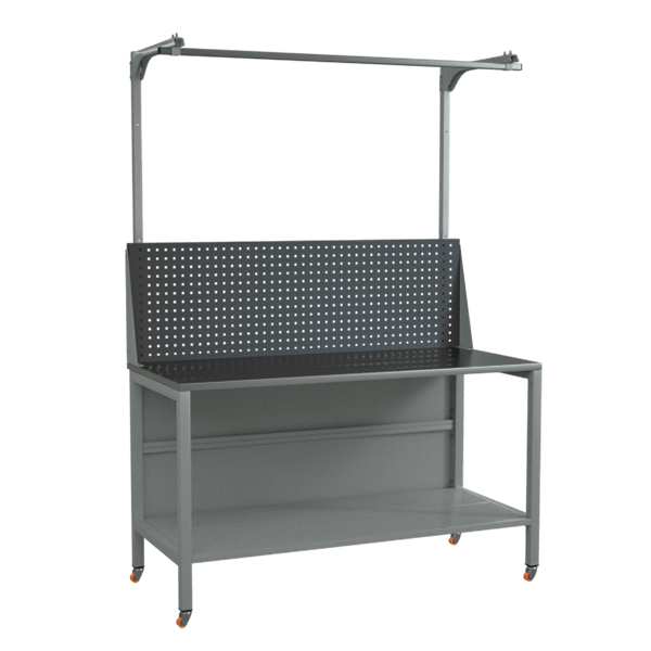 Верстак 1500 с экраном с консолями, полкой и колёсами