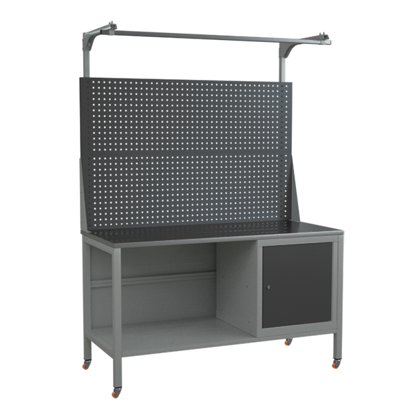 Верстак 1500 с поворотными колёсами, двойным экраном и тумбой
