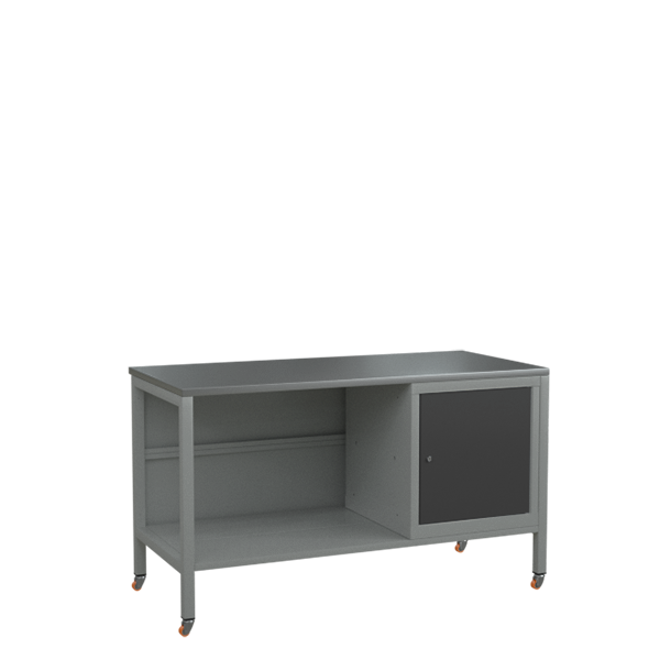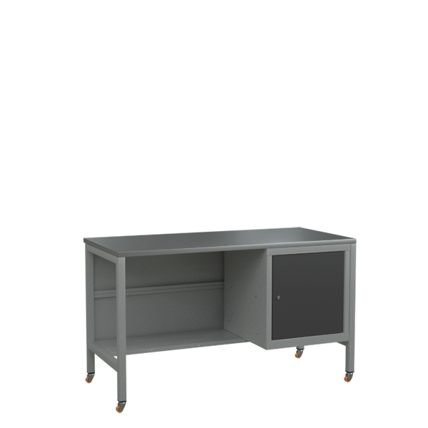 Верстак 1500 с поворотными колёсами, полкой и тумбой с дверцей