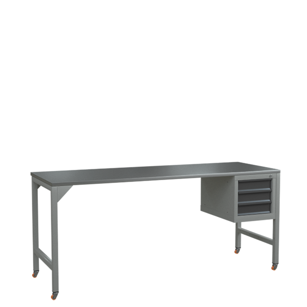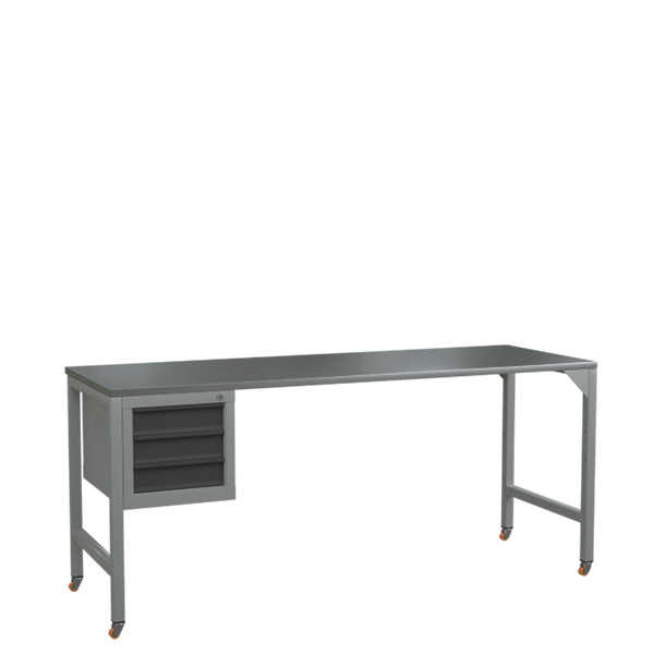 Верстак 2000 с колесами и тумбой с 3 выдвижными ящиками