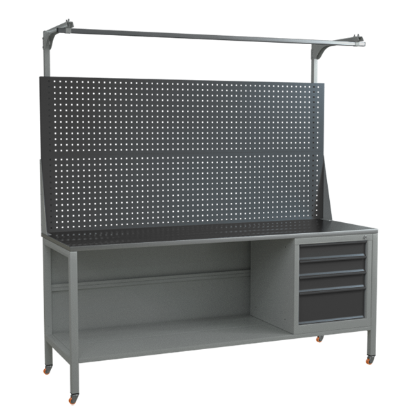 Верстак 2000 с колёсами, двойным экраном и тумбой с 4 выдвижными ящиками