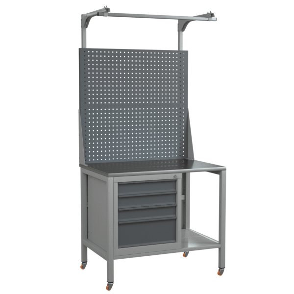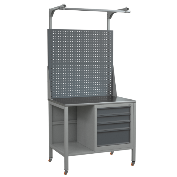 Верстак на колесах 1000 с двойным экраном и тумбой с 4 выдвижными ящиками