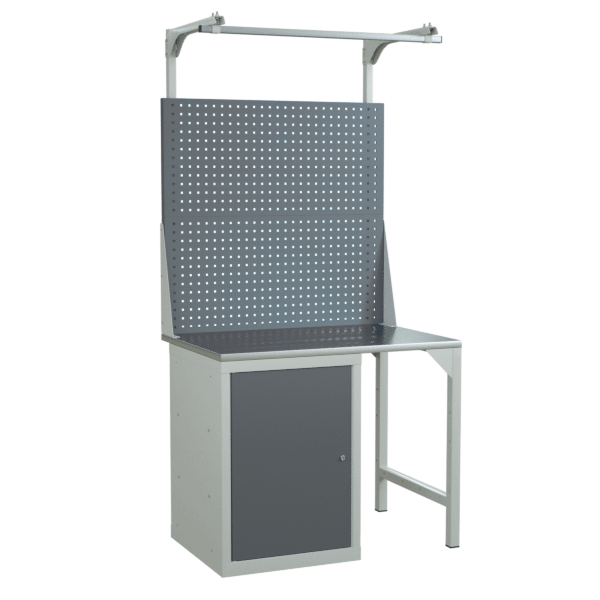 Верстак 1000 с экраном с консолями и тумбой с распашной дверцей и полками 825x1000x700
