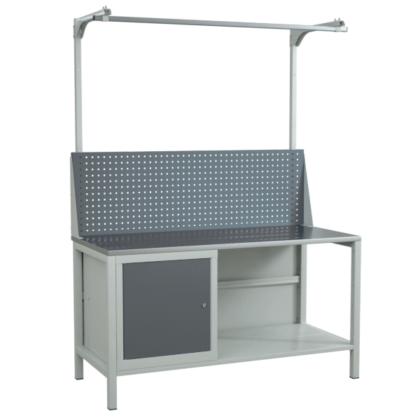 Верстак 1500 с распашной тумбой с полкой и экраном с консолями