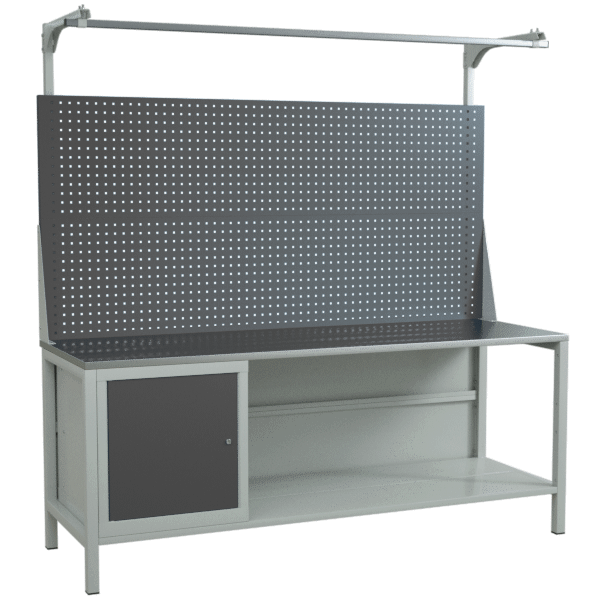 Верстак 2000 с двойным экраном и тумбой с распашной дверцей и полкой