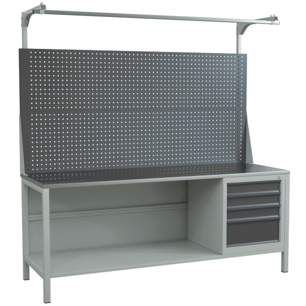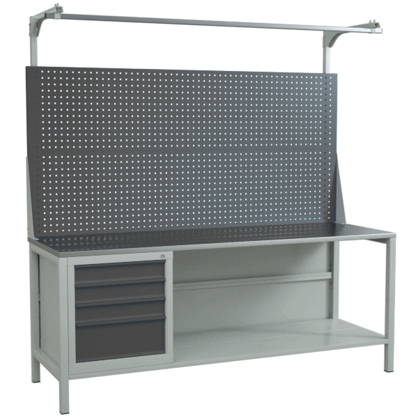 Верстак 2000 с тумбой с 4 ящиками и двойным экраном с консолями