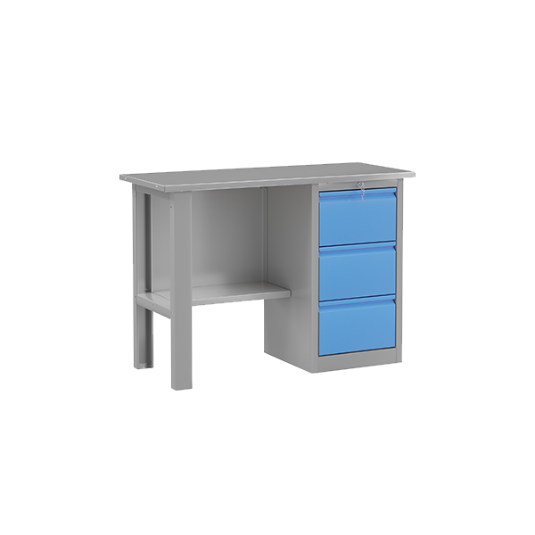 - Опоры верстака выполнены из листового металла, что обеспечивает их прочность.
