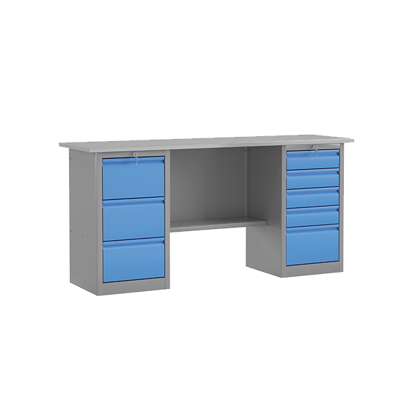 - Верстак имеет порошковое покрытие, что придает ему долговечность и защиту от коррозии.