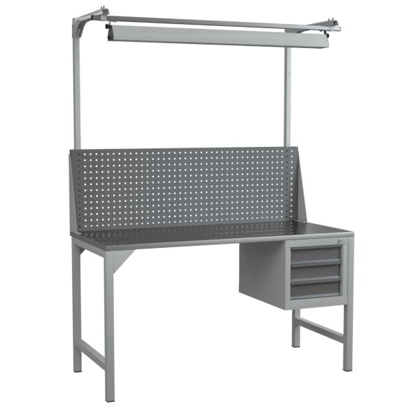Верстак 1500 с экраном, подвесной тумбой и светильником