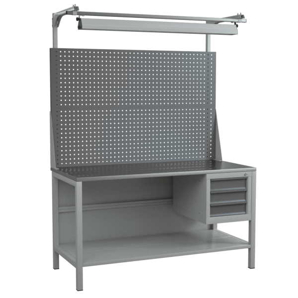 Верстак 1500 с подвесной тумбой, двойным экраном, полкой и светильником