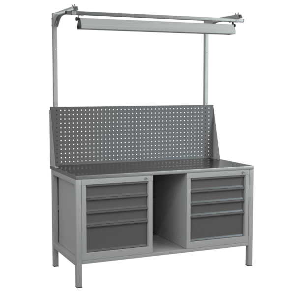 Верстак 1500 с тумбами, светильником, полкой и экраном