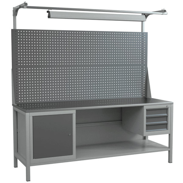 Верстак 2000 с полкой, светильником, двойным экраном и 2 тумбами