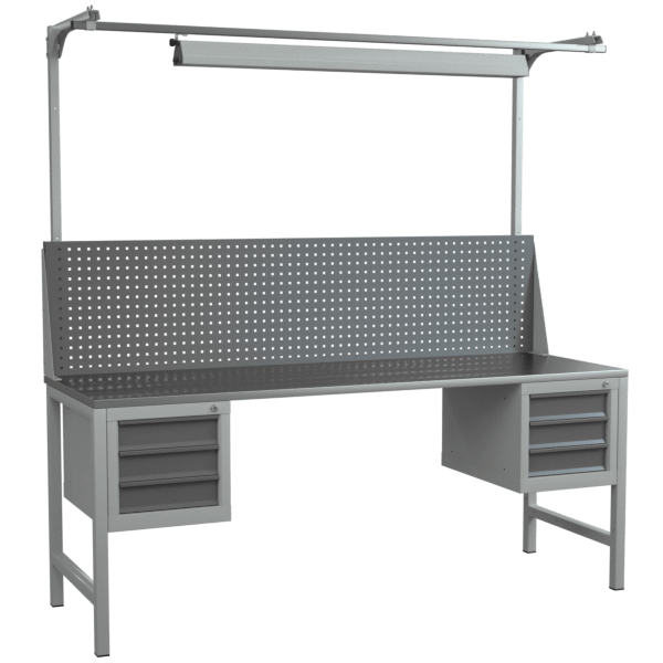 Верстак 2000 со светильником, экраном и 2 подвесными тумбами с выдвижными ящиками