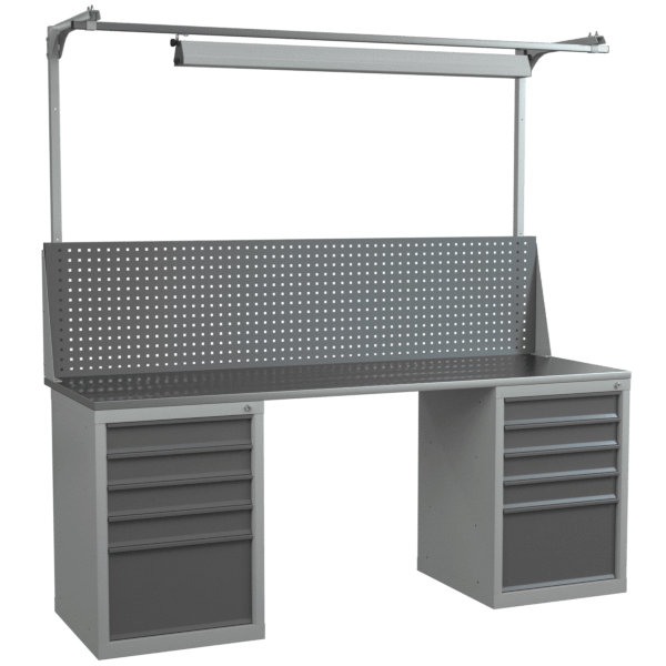 Верстак 2000 со светильником, экраном и 2 тумбами с 5 выдвижными ящиками