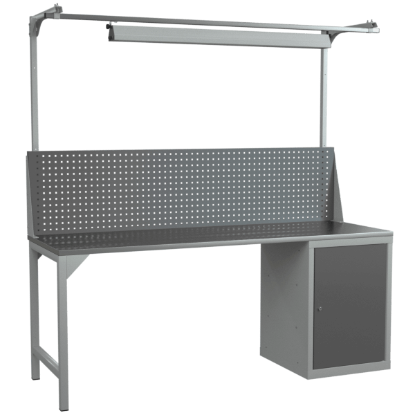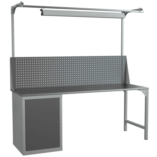 Верстак 2000 со светильником, экраном и тумбой с распашной дверцей и 2 полками