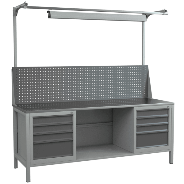 Верстак 2000 со светильником, полкой, экраном и 2 тумбами с 4 ящиками