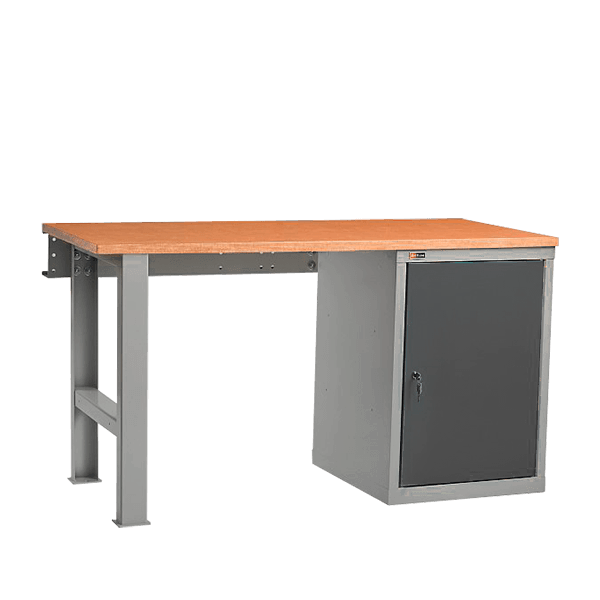 - В качестве одной из опор служит инструментальная тумба с двумя полками и распашной дверцей.