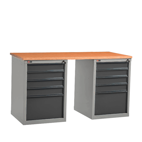 - Опоры для столешницы: две инструментальные тумбы с пятью выдвижными ящиками в каждой.