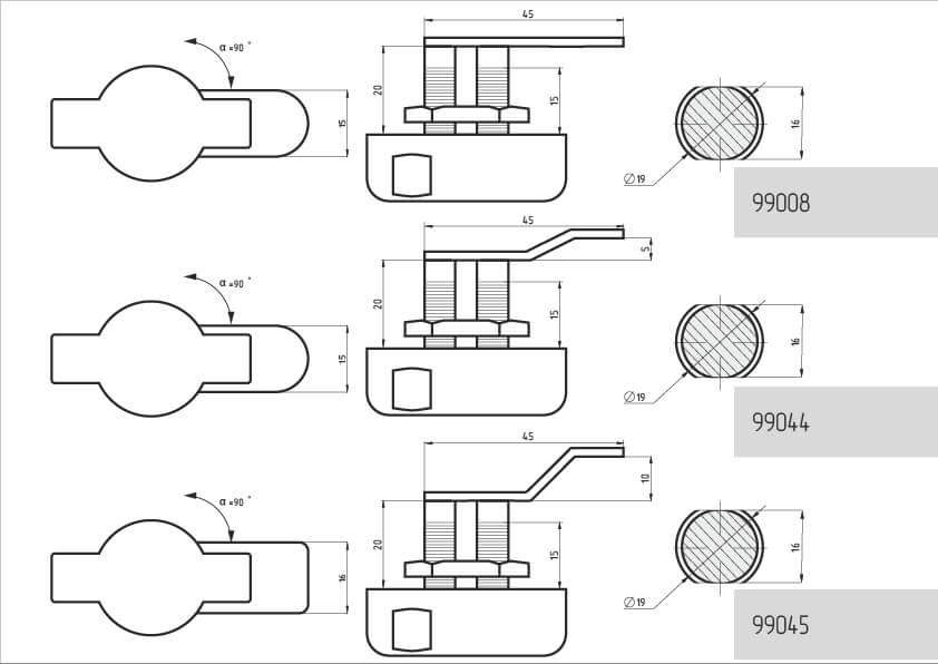 - Поворотный механизм фиксирует дверцу шкафа и для блокировки вешается навесной замок.
