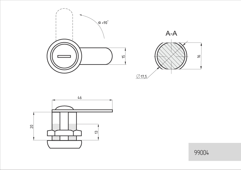 - Угол поворота ригеля составляет 90 градусов; есть фиксатор поворота.