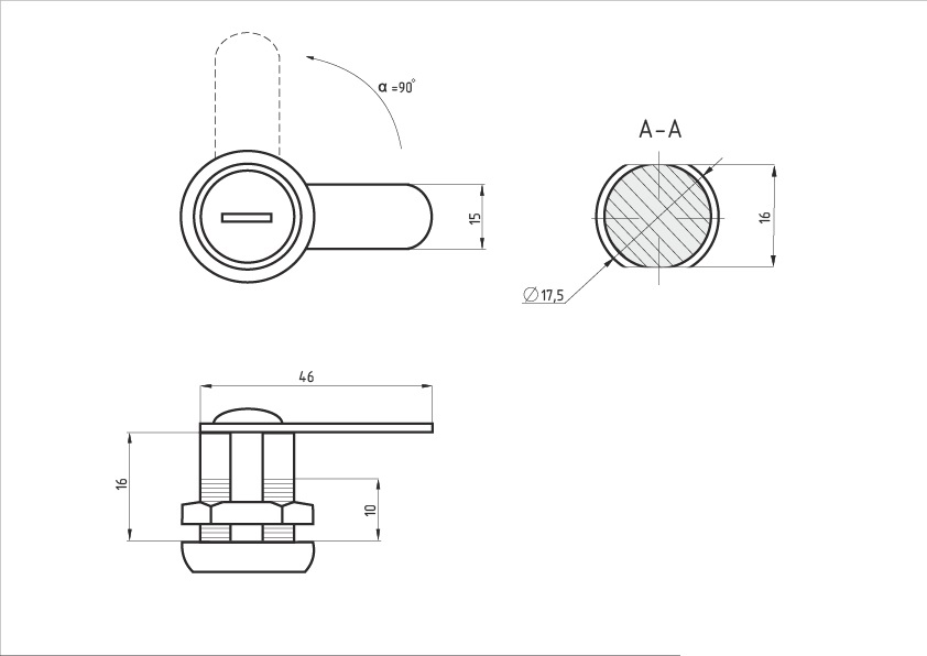 - Угол поворот ригеля составляет 90 градусов, имеется фиксатор поворота.