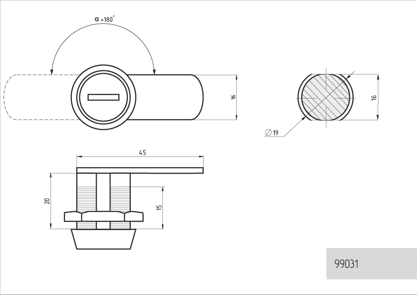 - Замок оснащён прямым ригелем с углом поворота 180 градусов.