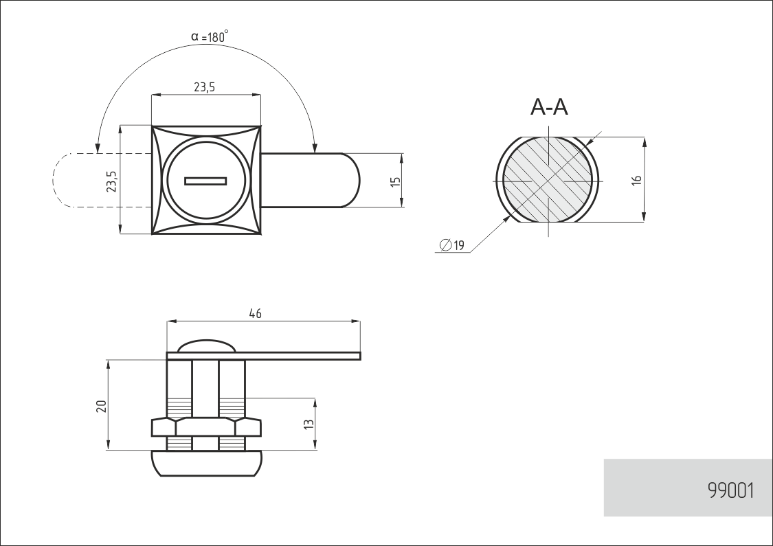- Поворот ригеля – 180 градусов; фиксатор поворота.