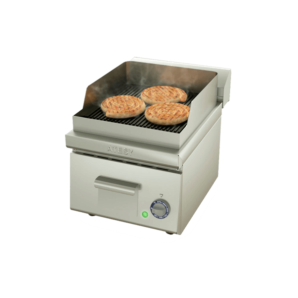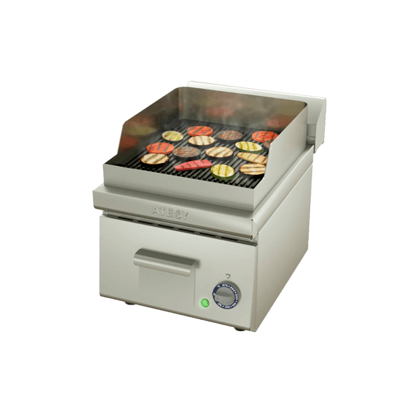 - Сборная электросковорода из нержавеющей стали с ребристой поверхностью используется для приготовления стейков из мяса и рыбы, сосисок, колбасок, сарделек, шпикачек, котлет для бургеров и овощей-гриль.